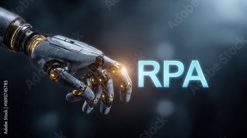 Detailed Closeup of a Robotic Hand with Arm Innovative Tech Concept for RPA, Automation, and Digital Transformation.