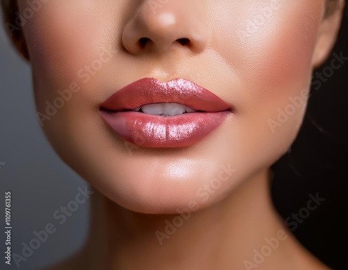 detailed close-up of a womans lips with perfectly applied lip liner and a layer of glossy finish, creating a defined, polished look on a clean background for a beauty-focused aesthetic