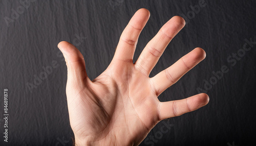 Detailed close-up of an open hand with palm lines visible against a dark background