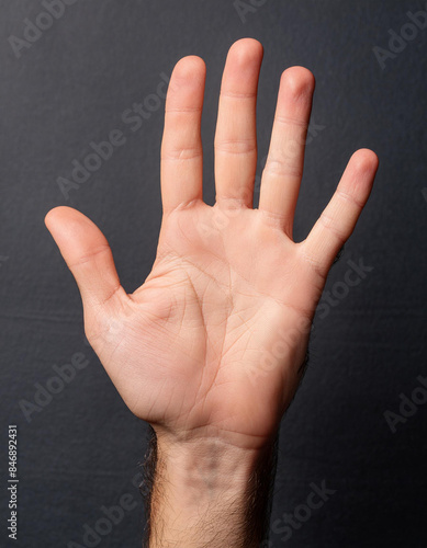 Detailed close-up of an open hand with palm lines visible against a dark background