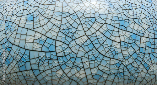 Detailed Close-up of Blue and White Cracked Ceramic Glaze Texture