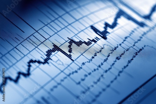 Detailed closeup of trading charts displaying stock market fluctuations on a computer screen, Trading charts on the computer screen close-up