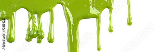 Detailed close-up of vibrant green paint splattered on a clean white background or PNG