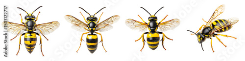 Detailed Close-Up of Wasp in Mid Flight Showcasing Unique Wing and Body Features