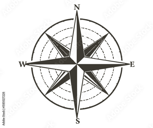 Detailed Compass Rose Illustration with Cardinal Directions and Concentric Circles