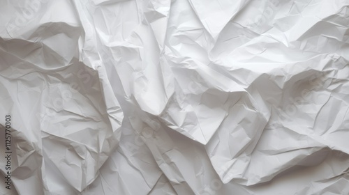 Detailed crumpled white paper with faint grid lines, The texture reveals pronounced folds and creases