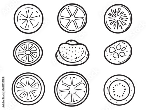 Detailed Cucumber Slice Line Art Design for Cooking Illustrations