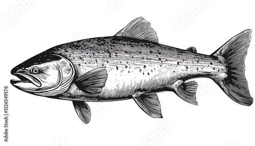 Detailed Engraving Black and White Illustration of a trout fish in Side Profile View. Transparent PNG. AI Generated