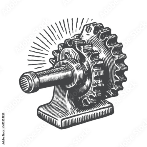Detailed Engraving of a Vintage Gear Mechanism Illustration