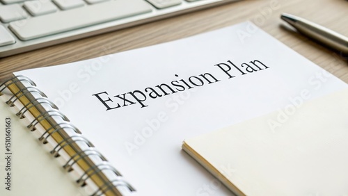 Detailed Expansion Plan Document on a Desk Surrounded by Office Supplies and Technology