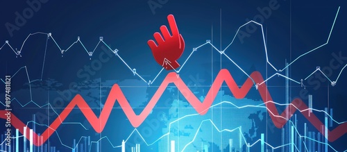 Detailed financial graph with a hand lifting a red arrow on a blue background, representing market growth, vector illustration for business banners.