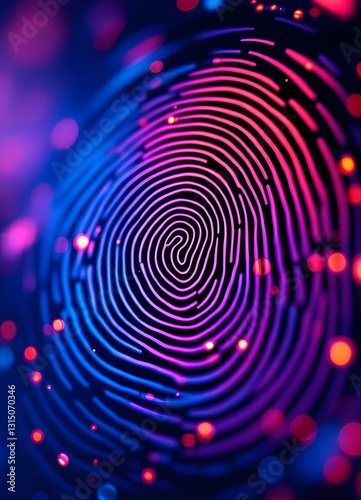 Detailed fingerprint scan with neon glow highlighting biometric security technology