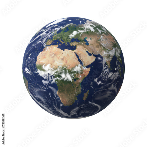 Detailed globe rendering showcasing the continents of Africa and Europe, presented against a pure