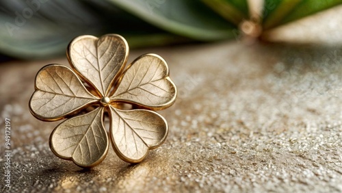 Detailed golden clover, blurred, natural background, for use in luxury branding, product packaging