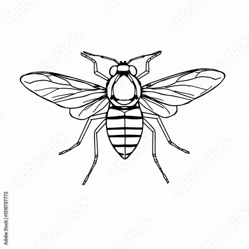Detailed Honeybee Anatomy Black and White Illustration Symmetrical Wings Fine Line Art Entomological Study Vintage Textbook Style