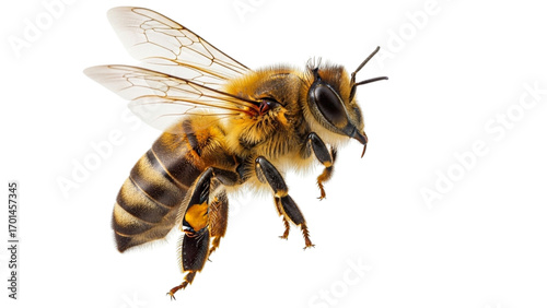 Detailed Honeybee Flying on Black Background Insect Wildlife