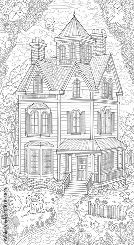 Detailed House & Home Building Design Coloring Book: Outline Sketch Doodle Illustrations with Page Drawing Elements