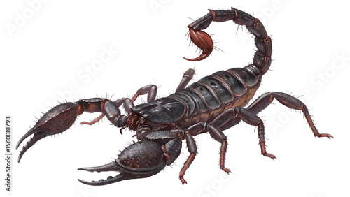 Detailed illustration of a dark scorpion with its tail raised isolated on transparent background