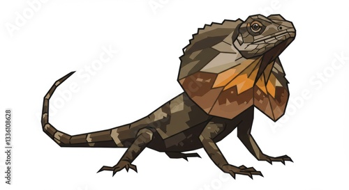 Detailed illustration of a lizard displaying vibrant colors and textures, set against a plain background - frilled neck lizard