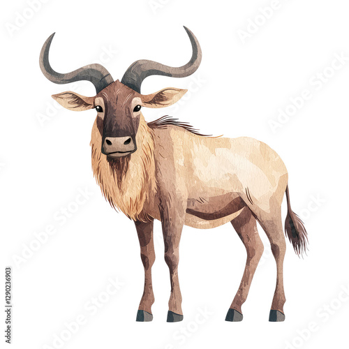 Detailed Illustration of a Wild Wildebeest Standing Gracefully in a Natural Pose with Textured Fur and Elegant Horns