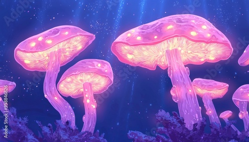Detailed illustration of fungi with glowing nucleus, hypothesis of cellular energy, realistic, microscopic view
