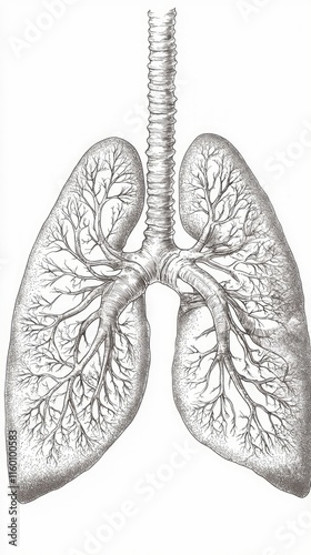 Detailed Illustration of Human Lungs with Branching Bronchi Structure