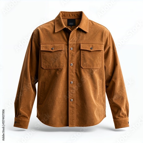 Detailed image of a corduroy shirt with a warm texture for fashion content on white background