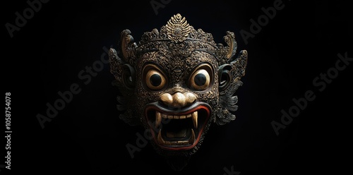 Detailed Image of Balinese Barong Mask Used in Traditional Dance, Dark Photography