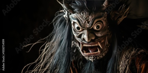Detailed Image of Balinese Barong Mask Used in Traditional Dance, Dark Photography