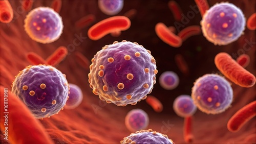 Detailed Interaction of Bacteria and Cells Under Microscope View