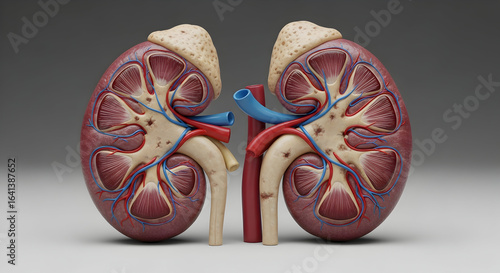 Detailed kidney anatomy illustration for medical education and research with realistic textures and anatomical accuracy
