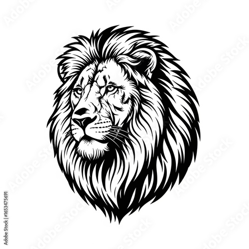 Detailed Line Art Majestic Lion Head with Powerful Mane Illustration