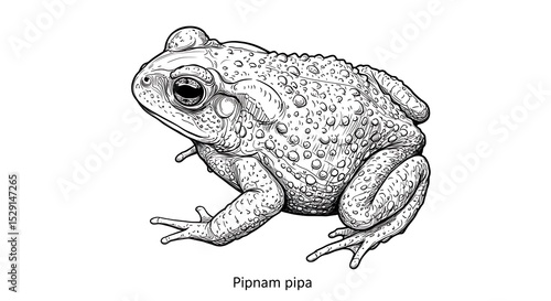 Detailed Line Art of a Surinam Toad, Pipnam pipa, on White Background