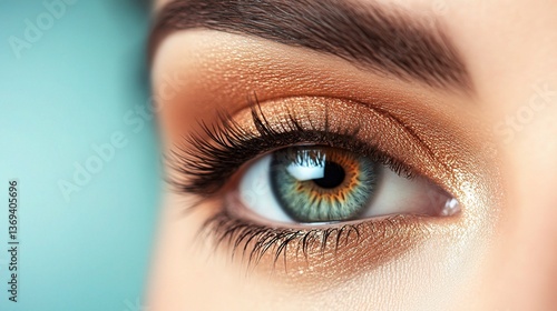 Detailed Makeup on Woman's Eye with Emphasis on Beauty and Color