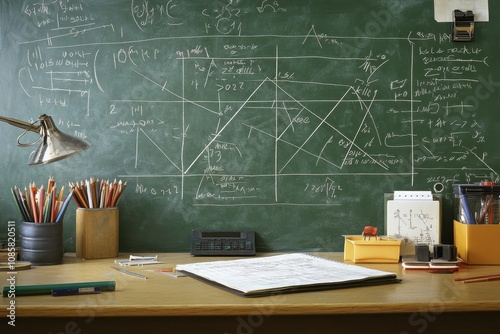 Detailed Mathematical Chalkboard with Equations and Diagrams