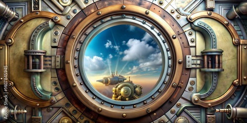 Detailed Mechanical Spaceship Interior with Blue Sky View
