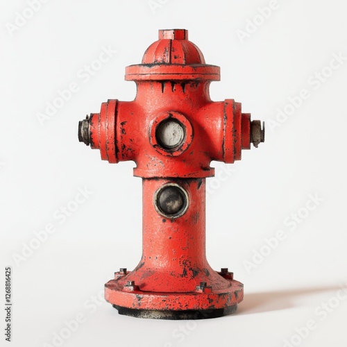 Detailed model of a fire hydrant painted in bright red with wear and tear evident on its surface