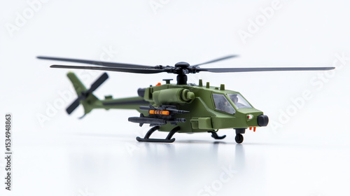 detailed model of military helicopter green color, showcasing its design and weaponry features. This miniature captures essence of aviation