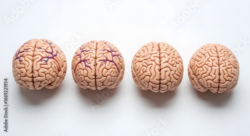 Detailed models of human brains displayed side by side on a plain background for educational purposes