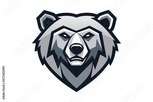 Detailed monochrome bear head displays striking angular stylization on a white backdrop beautifully