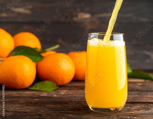 Detailed photograph of orange juice. Shot with a cinematic flair, high image quality, and a creative angle.