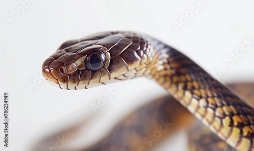 Detailed Portrait of a Grass Snake on a White Background