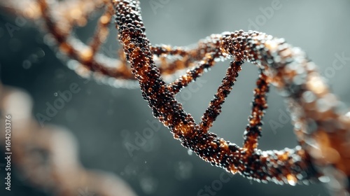 Detailed render of a molecular strand signifying health, dna structures