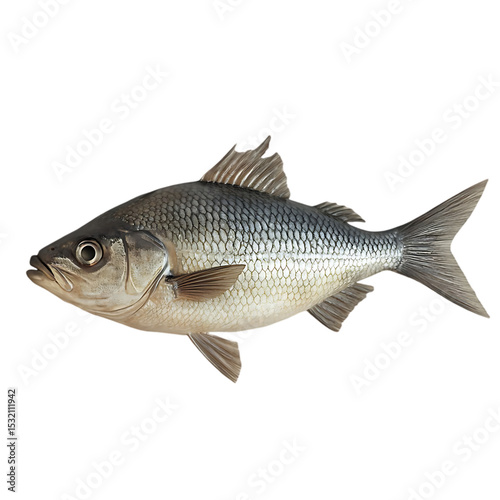 Detailed rendering of a silver fish isolated against a solid black background