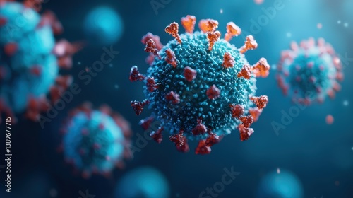 Detailed Representation of a Virus Under a Microscope in Blue Light