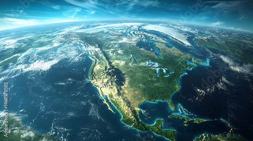 Detailed Satellite Image of North America Showing Landmasses and Ocean