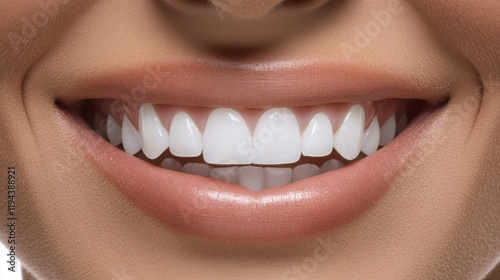 Detailed shot of a confident woman with a wide, genuine smile, highlighting her pearly white teeth and the overall glow of her expression.