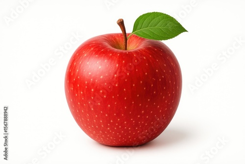 Detailed shot of a vibrant red apple against a plain white backdrop