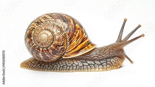 Detailed Snail with Soft Body Isolated on White Background