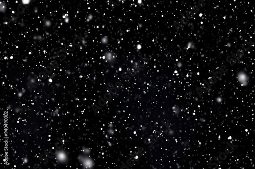Detailed Snowfall Overlay Image Isolated on Black Background Perfect for Dynamic Visual Effects